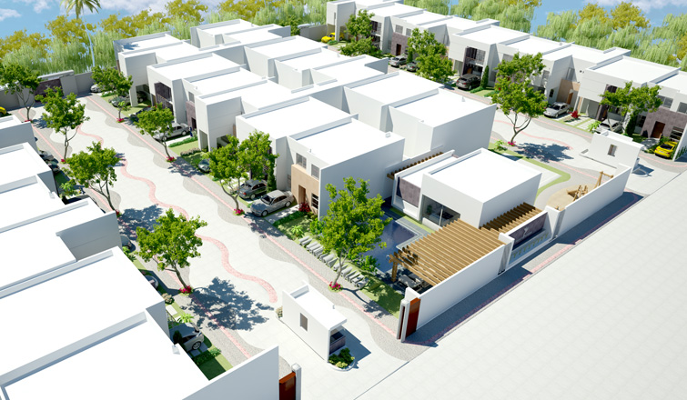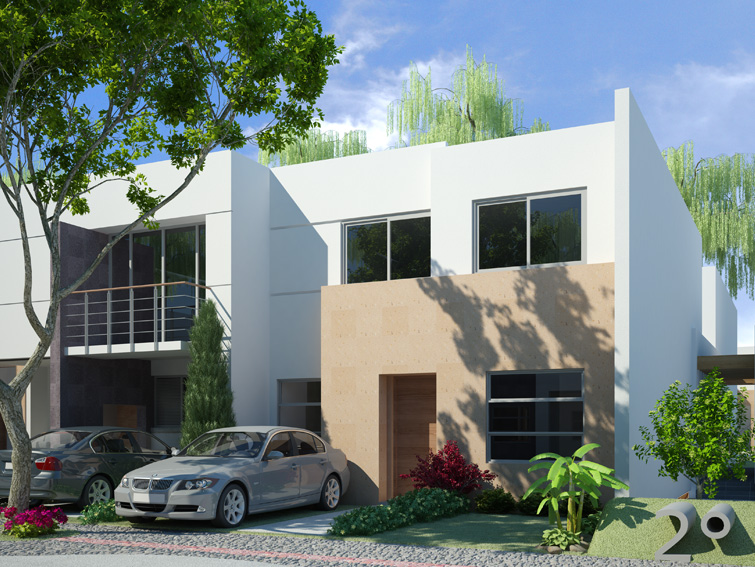 El trabajo completo comprendió la generación de fachadas para 3 modelos de residencia, interiores, imágenes aéreas, vialidades, remates de cerradas y casa club, además de animaciones de las mismas para generar recorridos virtuales.